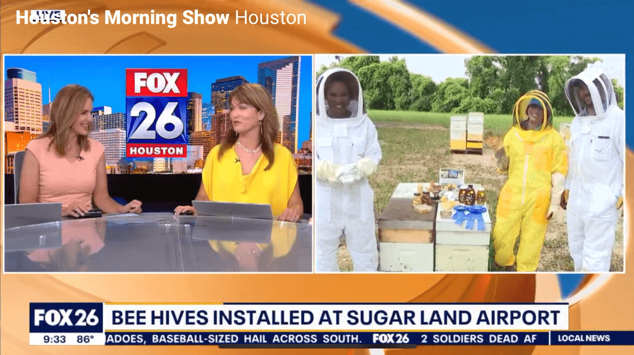 We would like to ShoutOut to the KSGR – Sugar Land Regional Airport who opened up their airport property to house multiple honeybee colonies that are managed by SweetNes Honey Apiaries & Beetique. KSGR – Sugar Land Regional Airport had some undeveloped land and were wanting to create a safe haven for our local pollinators. The property is filled with native wildflowers and pollinators including honeybees!