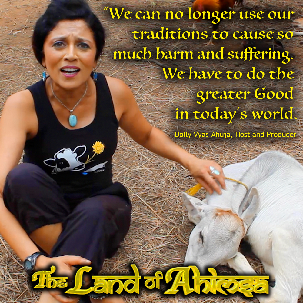 Dolly Vyas-Ahuja is an Ahimsa animal activist, public speaker and documentary producer. She is the grand-daughter of a freedom fighter who fought for social justice issues in India.