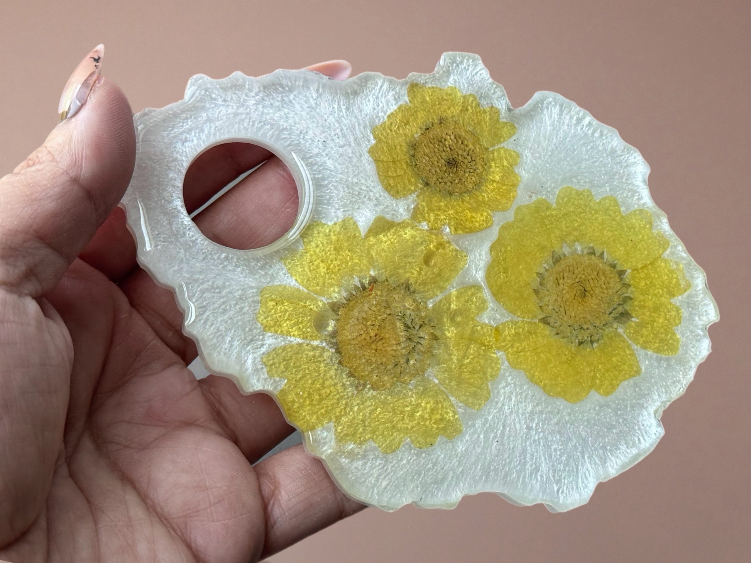 During the three years I lived with agoraphobia and didn’t leave my home, resin became my doorway. I keep going because art allows me to control the variables when life feels uncertain. My “unpredictable pours” are a reminder that even when things don’t work exactly as planned, you can find the magick in the results. I keep going for every “soft-hearted weirdo” who has been told to stay small but decided to bloom loud instead.