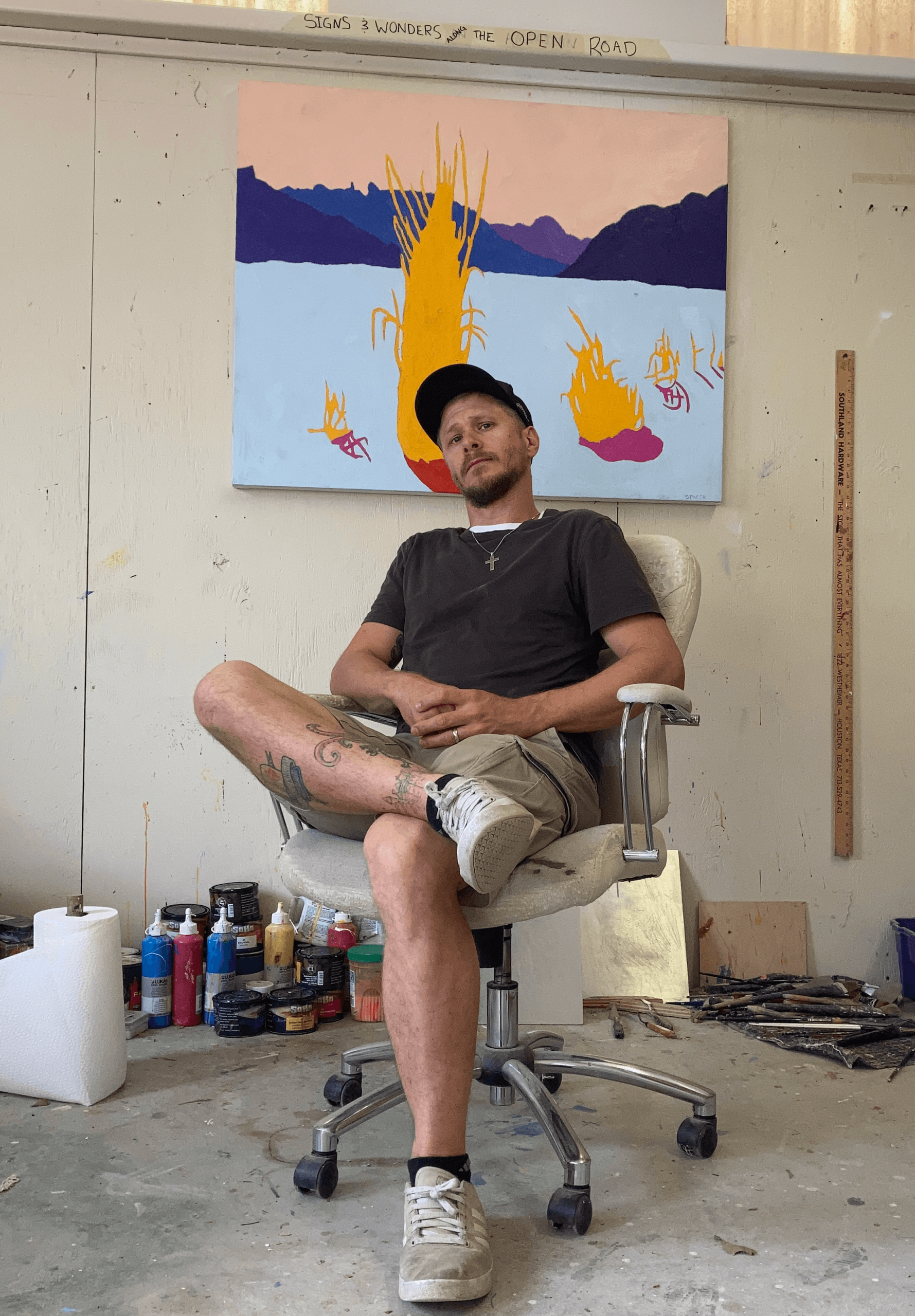 In 2016, after getting let go from one of those faux gigs, I started JS Canvas. I still run it today. We build high-quality, custom canvases, panels, and pedestals for working artists—especially large-scale and uniquely shaped pieces. After almost a decade running the business, and with a nudge from my friend David Hardaker (another solid British painter—look him up), I decided to fully return to my own painting. What had long been a private practice, something I did for myself with no plan to show or sell, became something I felt ready to bring back into the world.