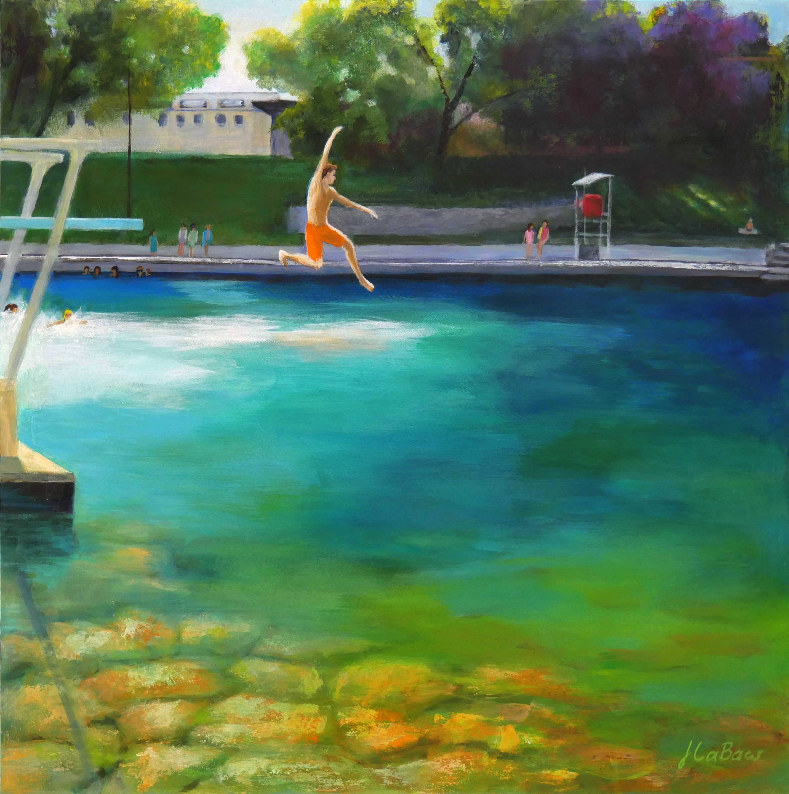 Hi there, I paint acrylic landscapes and abstracts. After over thirty years as a mechanical engineer at IBM, I retired and began painting as a hobby. I joined the Creative Arts Society, a local non-profit collective where I began exhibiting my art, then selling and then participating in art festivals. I serve on the Board of Directors and just completed my third term as President. I also volunteer weekly at the Community First! Village for formerly homeless neighbors where I help run the fine art printing operations, so art has pretty much become a full-time second career.