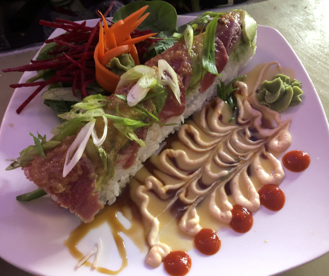 Our moto is to dine twice, once with your eyes and then your pallet. Sushi is an art and an expression of our chefs. Although the same menu item is ordered, it may not look the same twice. We encourage our chefs to put forth their creativity with our dishes and to design each dish as a masterpiece. Fruits and vegetables are important in a healthy diet and we use the colorful and tasteful garnishes to enhance each guests unique experience.