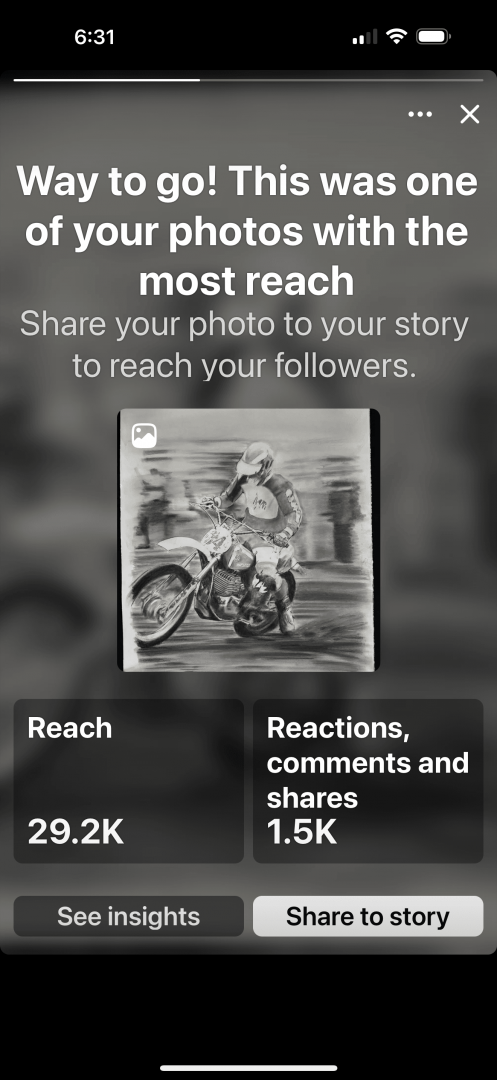 The first drawings were industry related (motorcycles) and I posted in related groups on social media. To my surprise they became immediately popular with people wanting to buy originals and prints. I went from a few hundred friends on Instagram to over 40,000. It was crazy and unexpected. The trajectory was so straight up that by Jan 2024 I quit my sales job and began doing art full time. Apparently, hand drawn, photo realistic pencil art is popular enough to provide an income.