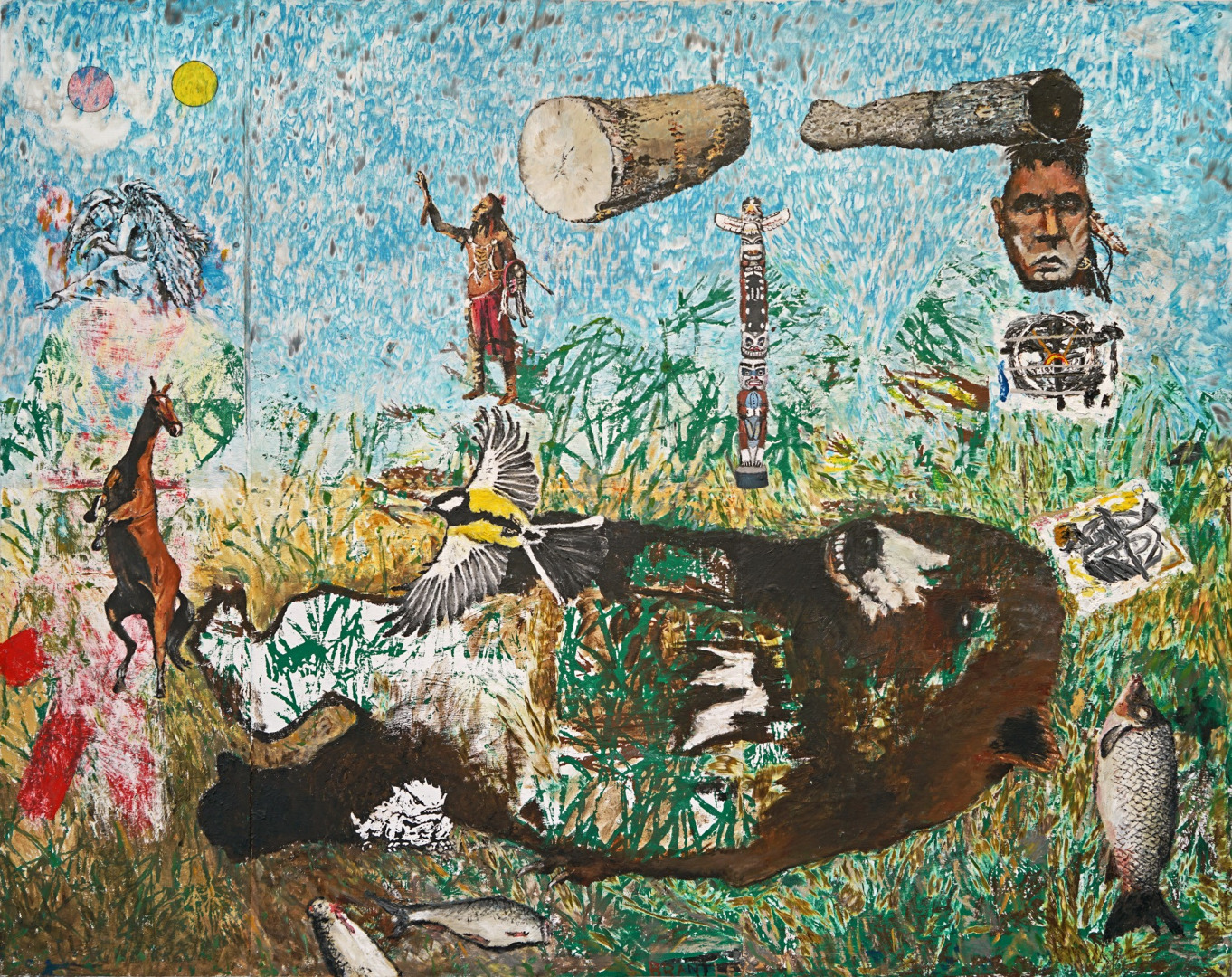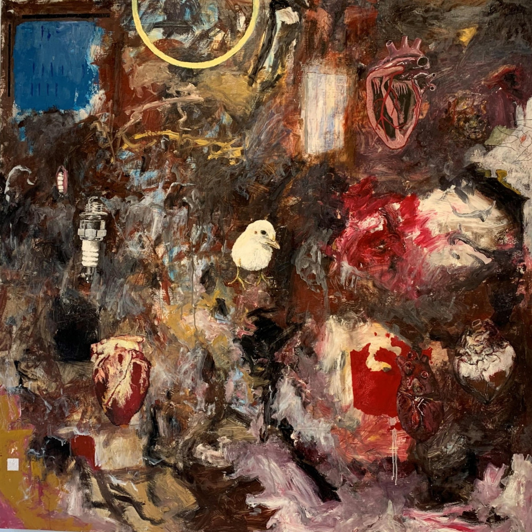 My technique is paint, pencil or ink deployed on metal, wood, canvas or paper and is almost sculptural in application; building up surfaces of different color and texture, then scraping back through them. The rendered images can be compliments or casualties of this process and are related to everything else by the relationships the viewers divine. Nonetheless, the building and scraping back through the layers during the process is a strategy and usually yields pleasingly unanticipated results. If not, more building and scraping and drawing. Eventually, the pieces find me where I find them.