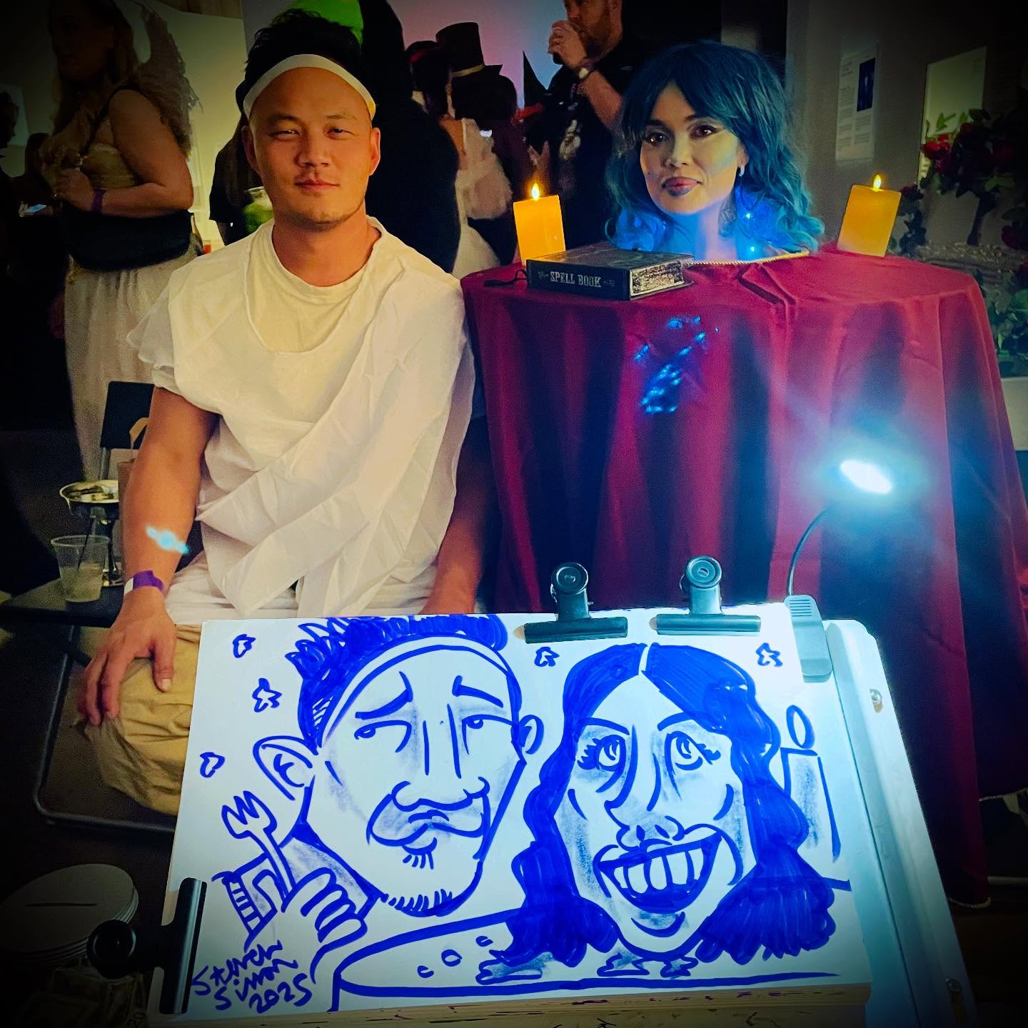 I started my caricature business by volunteering at church festivals in my hometown, where I wanted to serve my community and put my artistic talents to good use. Having drawn caricatures since childhood, I decided to develop the skill further by taking a course at School of Visual Arts and studying instructional books. What began as a simple way to give back naturally grew into a business after I created a logo, handed out business cards, and began receiving steady requests for events.
